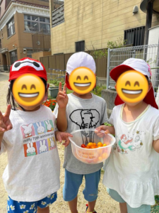 1/4サイズを食べる子もいましたよ😊おかわりもしたり、自分たちで育てた野菜を食べられて喜ぶほし組さんでした🥰
