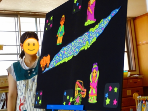 でていました🌕みんなで作った七夕の製作の紹介や、七夕のパネルシアターを見、天の川にお星さまを貼りました⭐