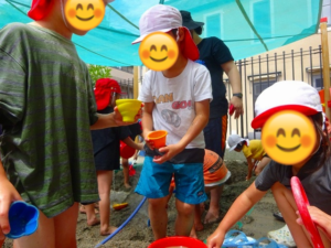 今日は、お天気が良かったので念願のどろんこ遊びをしました😀どろだんこ遊びことをとても喜んでいたみんな😜大喜びで穴を掘って池を作ったり、大きな山🏔を作ったりして盛り上がり、中には池の中に浸かる子やホースの水を浴びにくる子もいました😚また、思い切り楽しみたいと思います😃